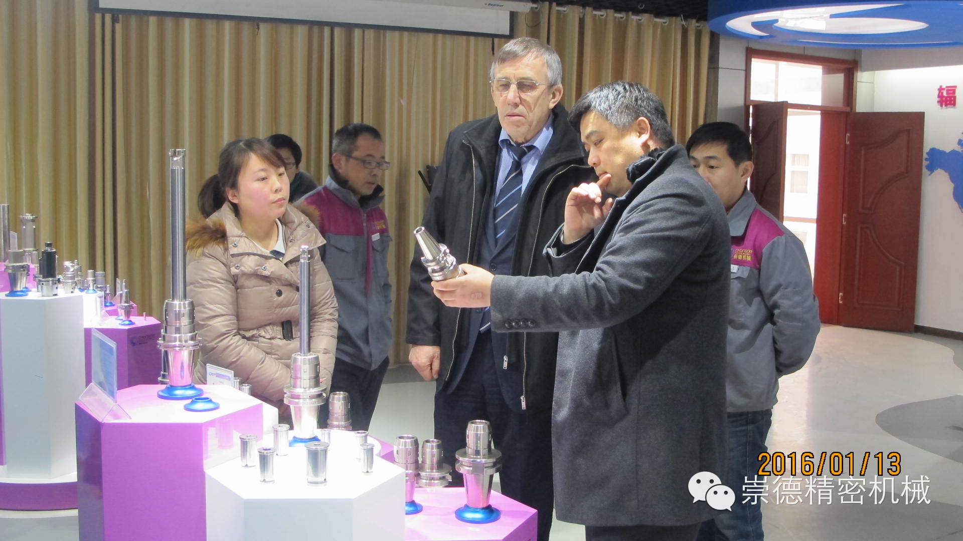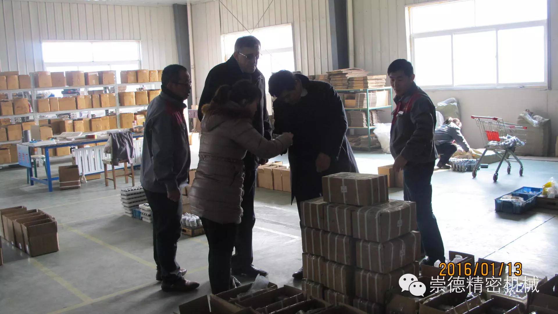 1.13日上午十點,俄羅斯客戶應(yīng)約抵達崇德。總經(jīng)理帶領(lǐng)崇德高管熱情迎接,還沒等緩解一路的車馬勞頓,我們這位外國友人就迫不及待的想要參觀一下崇德公司。他說他想認真看看崇德產(chǎn)品,在意大利展會上他對我們的產(chǎn)品非常滿意。